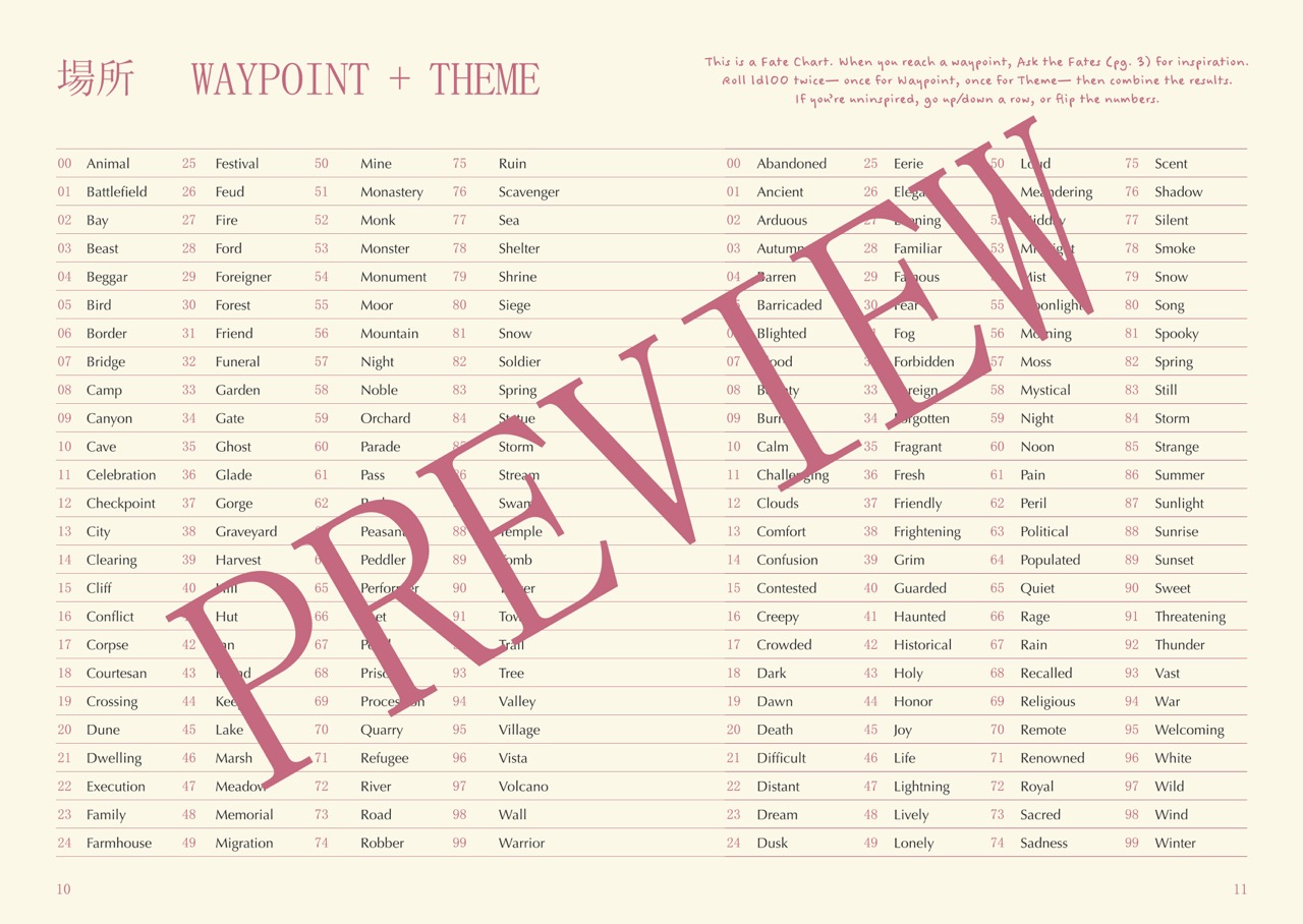 love the oracle tables, i know they will spark ideas in me. thinking about printing this and bringing it to play on my long train journey, seems like a really good solo game to play on the road with the paper dice and the simple core mechanic